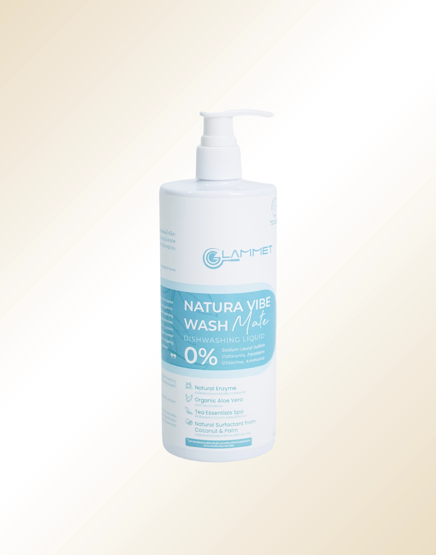 Glammet NaturaVibe WashMate น้ำยาล้างจาน ถนอมมือ ไม่ทิ้งคราบ ผลิตภัณฑ์ล้างจานธรรมชาติ กลิ่นชาเขียว 500 มล.